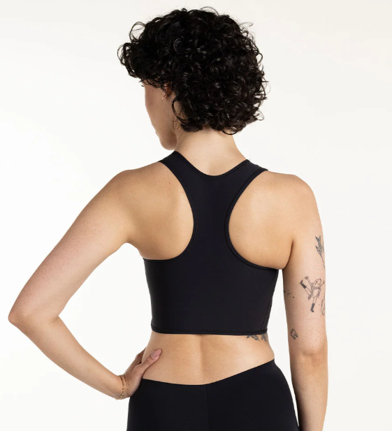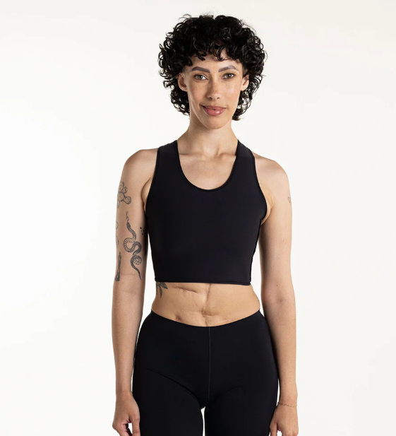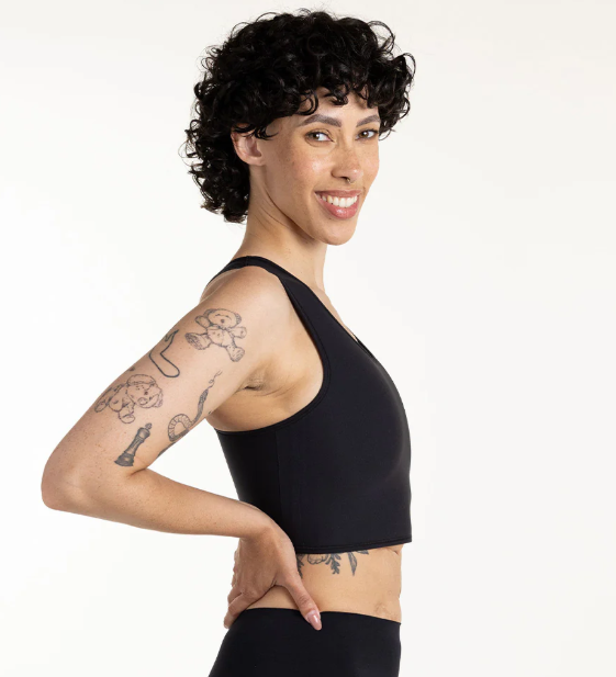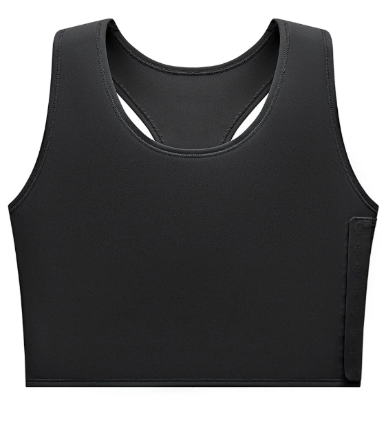 A chest binder that flattens your bust. With 3 columns of hooks for an adjustable fit.
